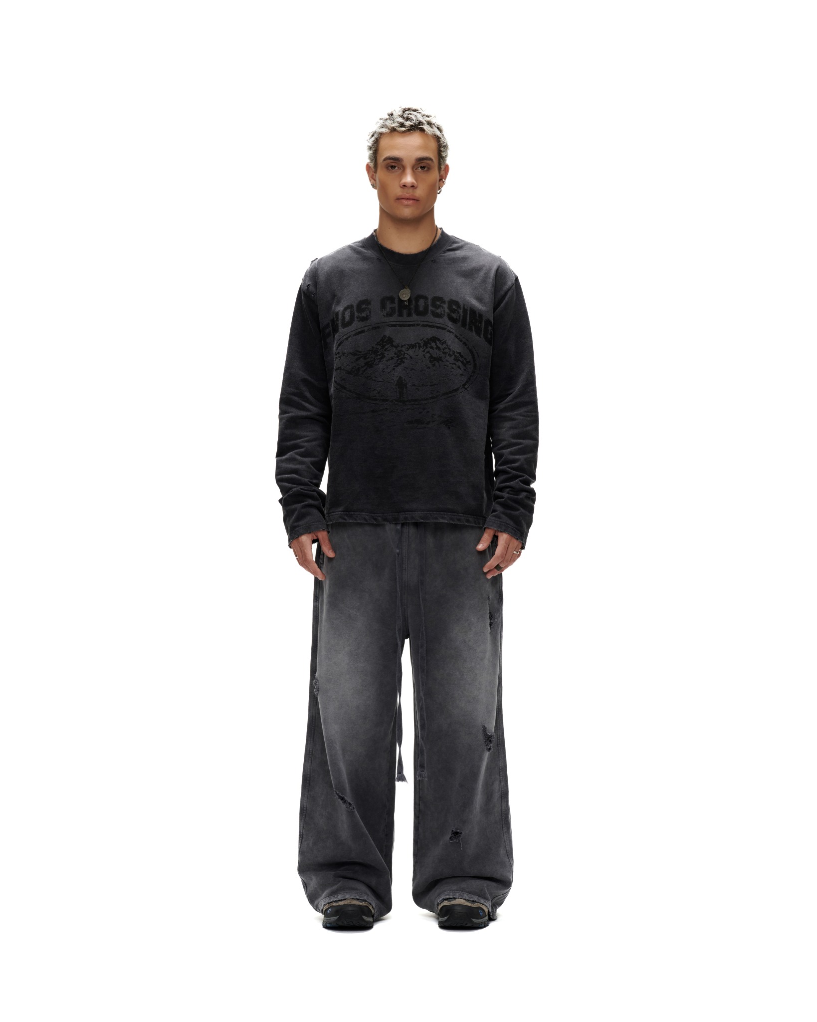 JGW8 – “FNOS” WASHED RIPPED SWEATPANTS – DARK GREY