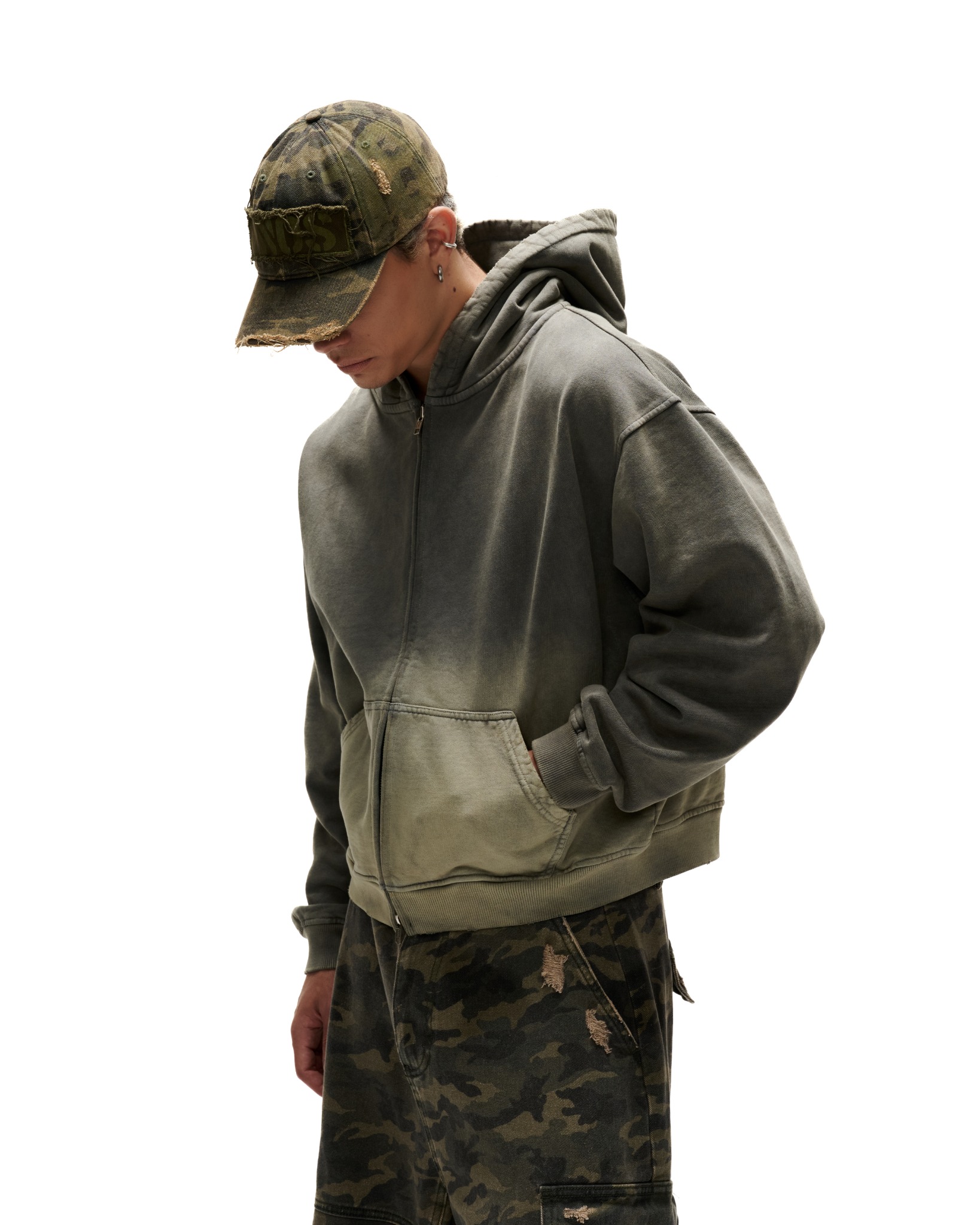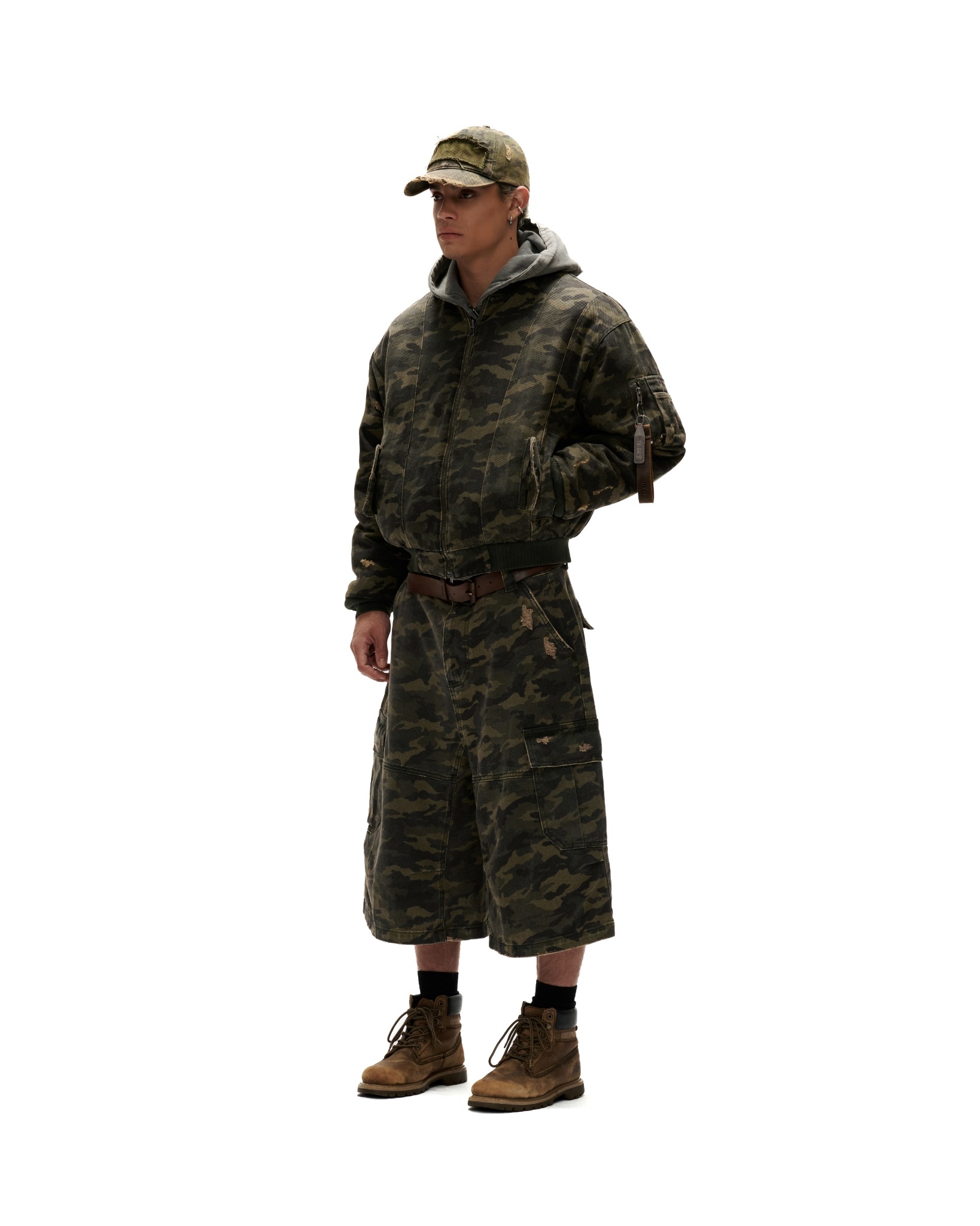 CS3 – “FNOS” WASHED CAMO CARGO SHORTS – DARK GREEN