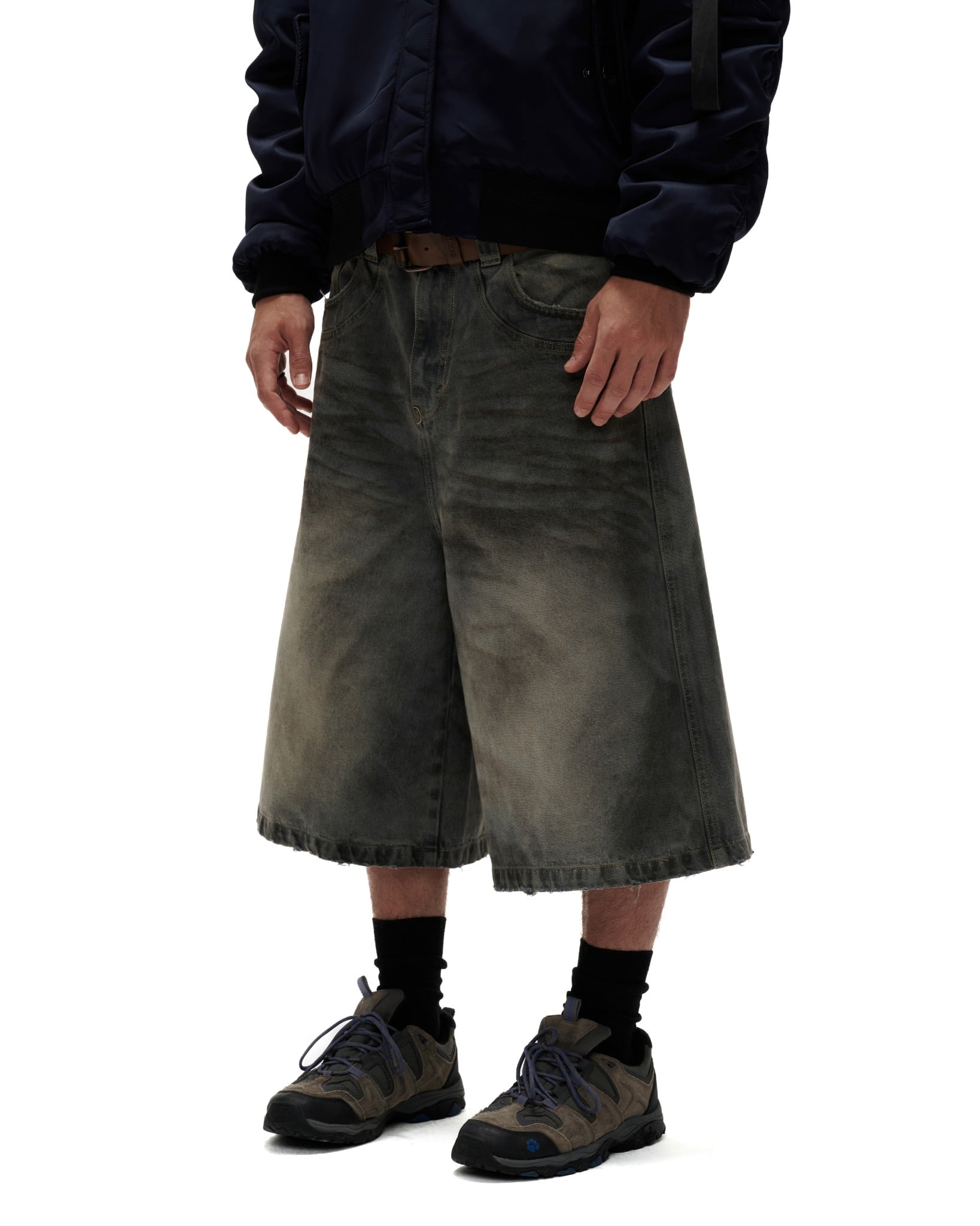 BSJ6 _ “FNOS” WASHED BAGGY DENIM JORTS – DIRTY BLUE