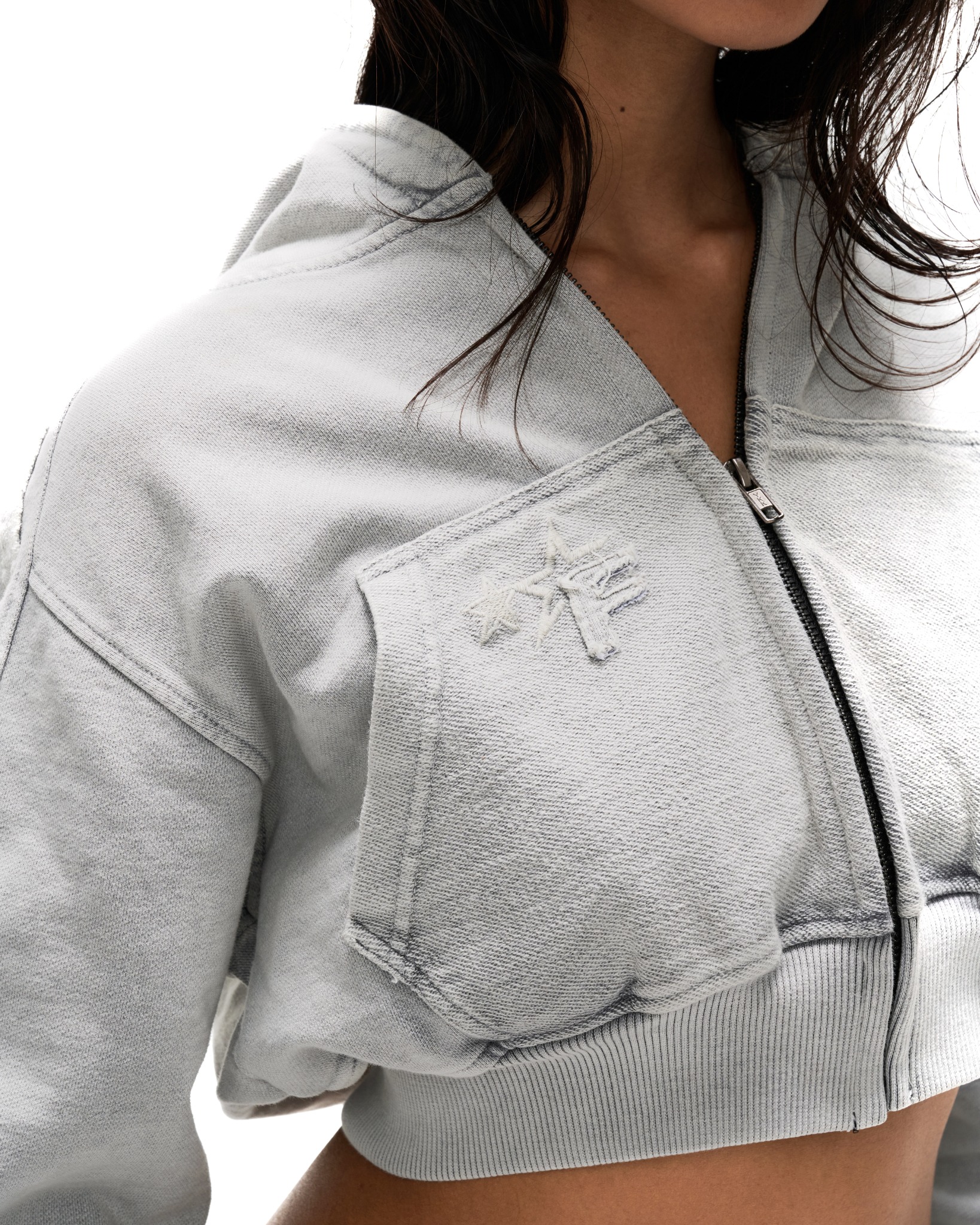 HDW3 – “FNOS” WASHED CROPTOP HOODIE – GREY